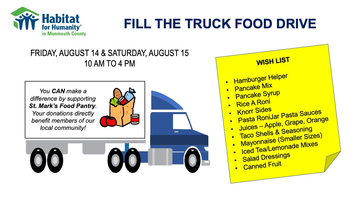 Fill the Truck Food Drive – August 14 & 15 Event Details Date: August 14, 2020 10:00 am – 4:00 pm Venue: Super Foodtown - Rt. 36 Categories: Fundraiser