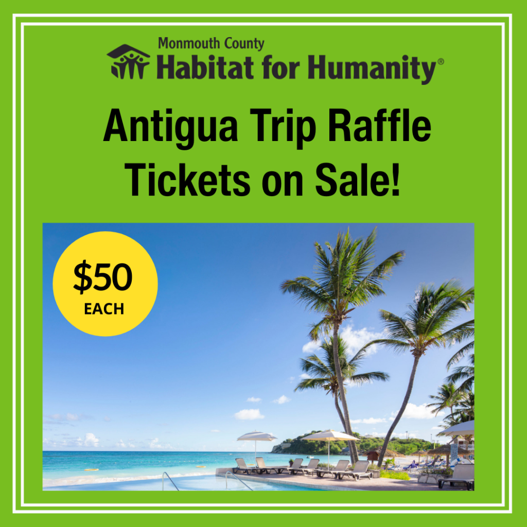 - Contact Stacie Bradley at sbradley@monmouthhabitat.org or (732) 728-0441 x 316 to confirm if you are purchasing an Antigua Trip Raffle ticket or the Pickleball 2026 50/50 Raffle Ticket. Please let Stacie know how many you would like.